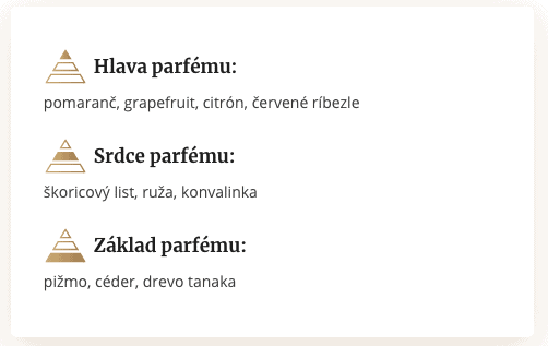 Vôňa Joy je definíciou radosti, no a čo viac patrí k letu, než radosť z dlhých, teplých letných dní? Skrýva v sebe omamnú vôňu ovocia, kvetov a dreva. V úvode vône vás osvieži bergamot a mandarínka. Kvetinovo-ovocné srdce spolu s intímnym základom vône vám na pokožke zanechajú nežnú a zmyselnú vôňu. Táto ľahká letná kombinácia na vás zapôsobí ako elixír dobrej nálady.